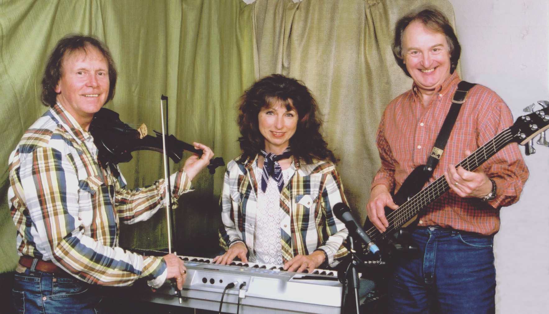 Trio (3) Dick Irish on exciting bass guitar accompanies Roger and Sandy. |