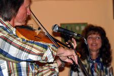 Roger Downton plays high energy foot tapping fiddle tunes from England, Ireland and America. Sandy Downton not only plays keyboard and percussion, but also provides plenty of entertainment as she 'calls' the dances, and also performs exciting floor shows of Hillbilly style hard shoe percussive dance (Appalachian) and soft shoe Irish reels. |